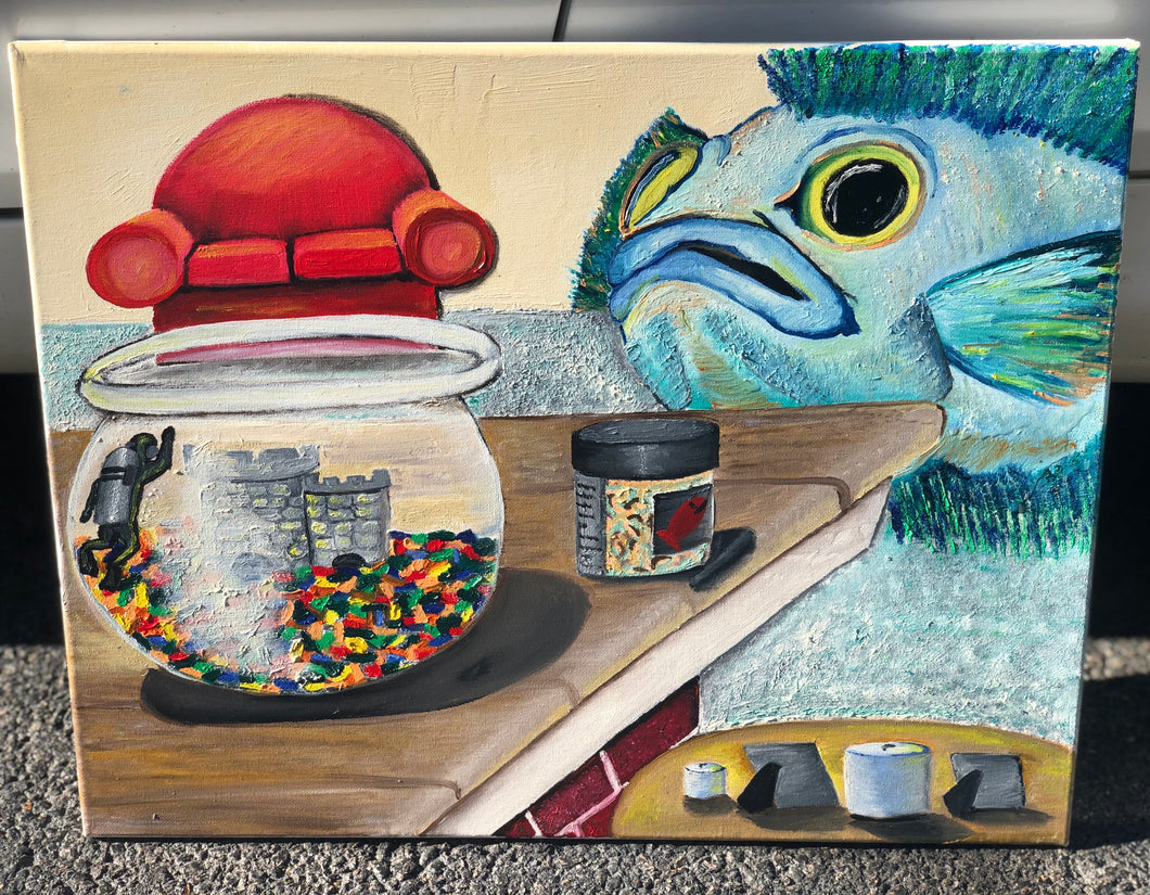 This painting is 16 x 20" in size. It was created with oil paint and finished with gloss sealant.